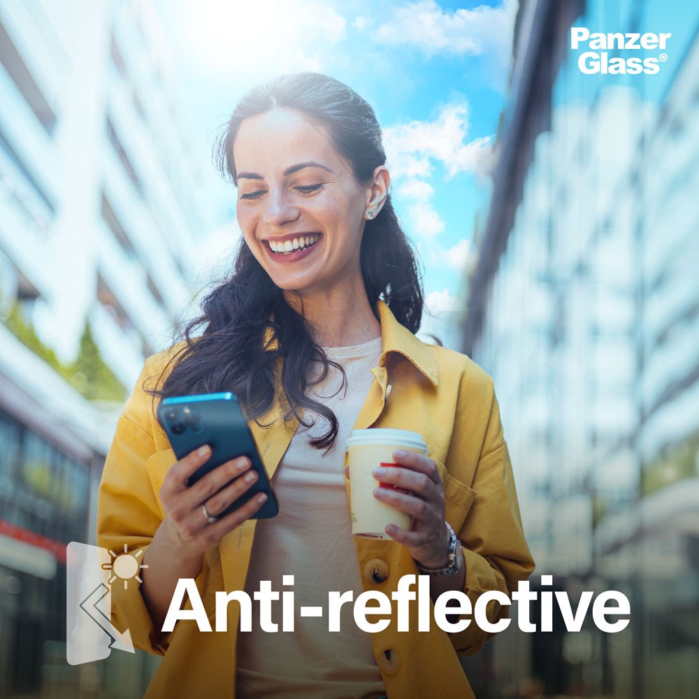 (7) Da skærmbeskyttelsen er anti-refleksiv, er det perfekt til at have med udenfor, hvis der er meget sol. Glasset reducerer solens refleksioner og kunstig belysning, så det altid er muligt at se skærmen, hvilket næsten er umuligt på en almindelig skærm i sollys.
