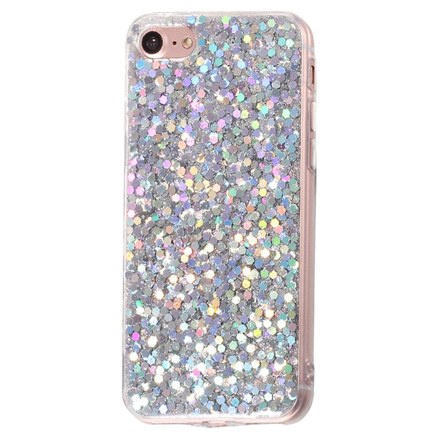iPhone SE (2022 / 2020) / 8 / 7 Glitter Bagside Cover - Sølv er i restordre og vil blive sendt, så snart det er på lager igen.