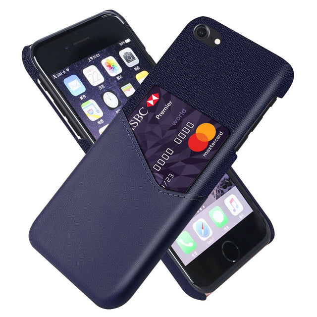 iPhone SE (2022 / 2020) / 8 / 7 Læder & Tekstil Bagside Cover m. Kortlomme - Blå5712577013493 |