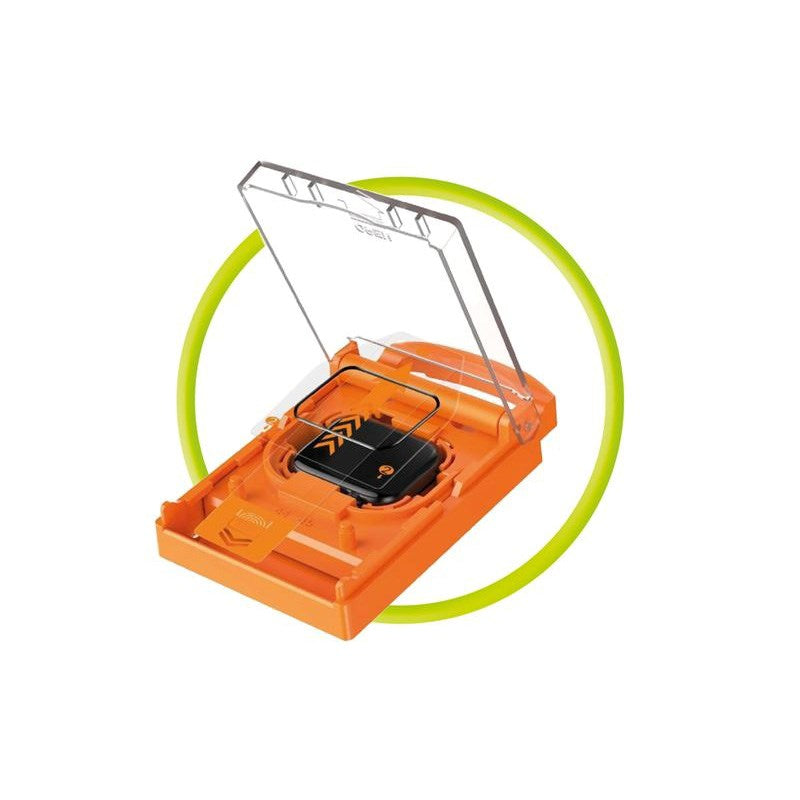 Pakken inkluderer en praktisk monteringsramme, som gør det let og hurtigt at sætte denne Apple Watch 11 / 10 (42mm) skærmbeskyttelse korrekt på – helt uden luftbobler eller besvær.
