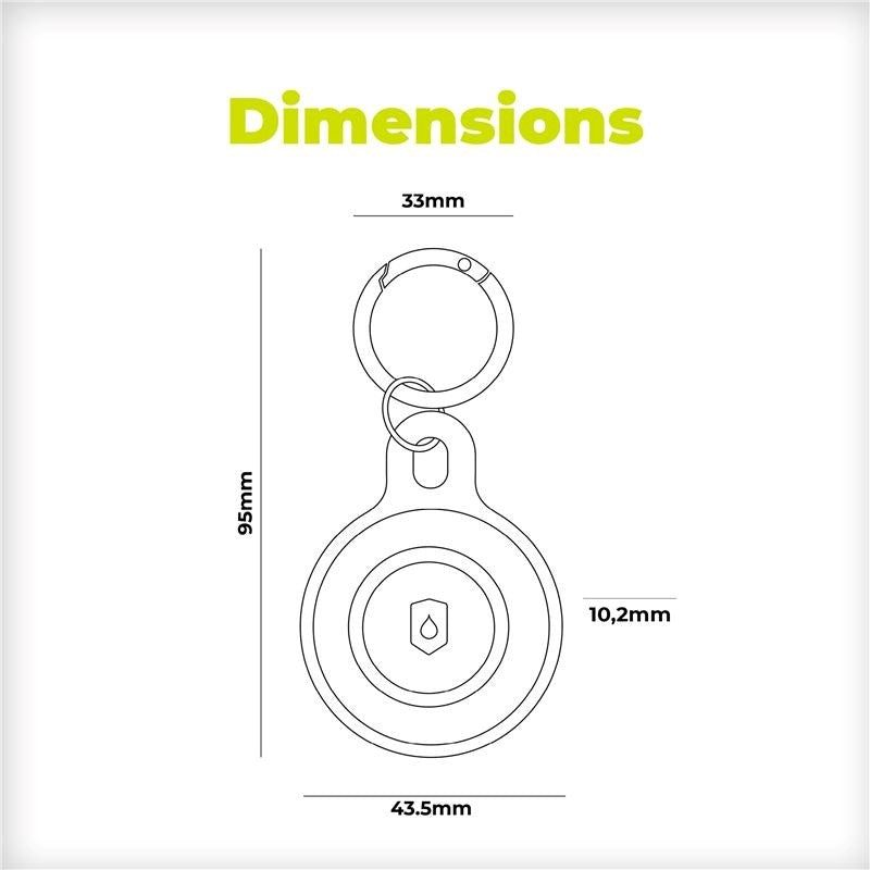 - Vand- og Støvafvisende: Holderen beskytter din AirTag mod støv og vand, så den også kan bruges i f.eks. regnvejr.