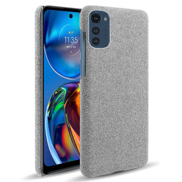 Motorola Moto E32 / E32s Stofbetrukket Plastik Bagside Cover - Lys Grå er i restordre og vil blive sendt, så snart det er på lager igen.