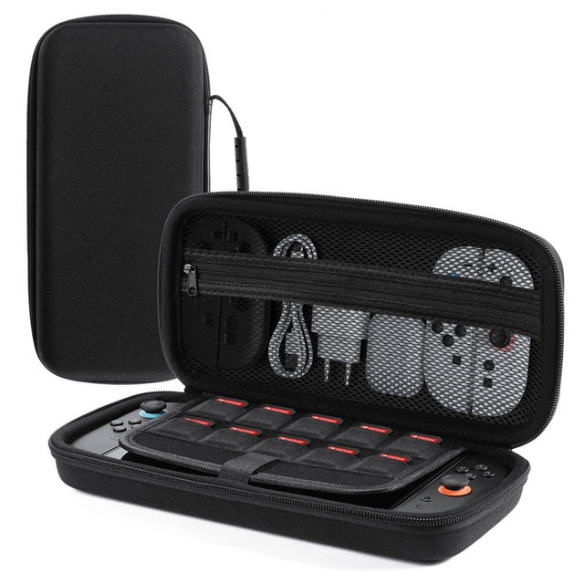 Hold styr på alt dit udstyr med taskens gennemtænkte indretning. Den har dedikerede rum til din Nintendo Switch 2-konsol, oplader, kabler og controllere, hvilket forhindrer ridser og skader. En smart, fløjlsbeklædt skillevæg i midten giver ikke kun ekstra beskyttelse til skærmen, men fungerer også som holder for op til 12 spilkort, så du altid har dine yndlingsspil lige ved hånden.