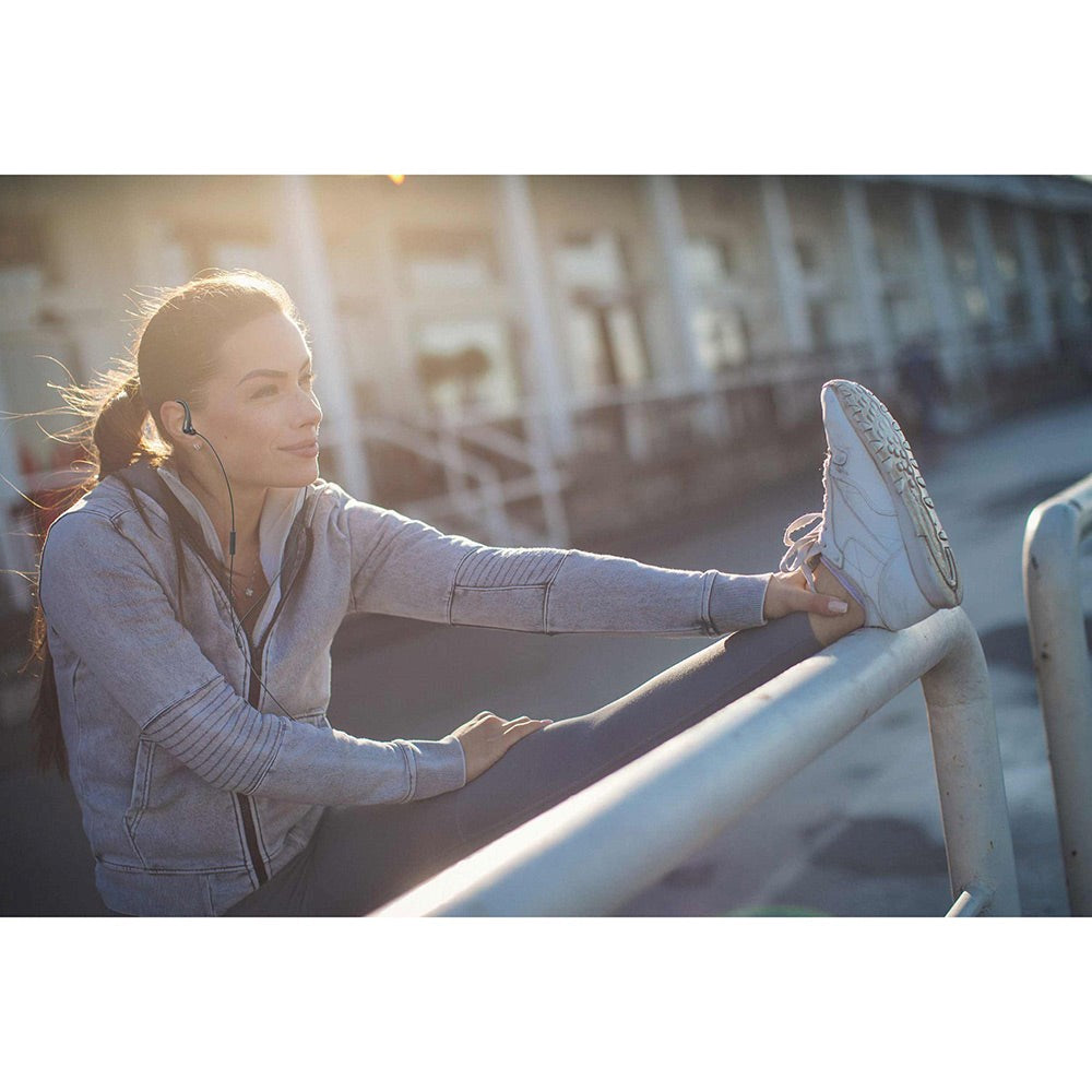 Høretelefonerne er in-ear, men er lavet med en ørekrog, som gør at de vil sidde godt og sikkert fast i og rundt om dit øre. Det gør at du kan træne og løbe uden bekymringer om dit ehadset.