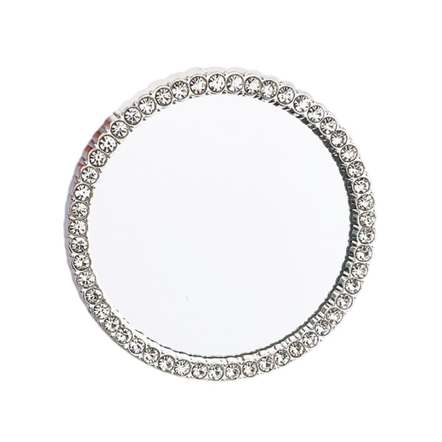 Det runde spejl, med en diameter på 5,3 cm, passer flot til de fleste telefonmodeller og fungerer som både pynt og hurtig refleksion. Den dekorative kant er prydet med små, glitrende rhinsten, der fanger lyset og skaber et smukt spil.