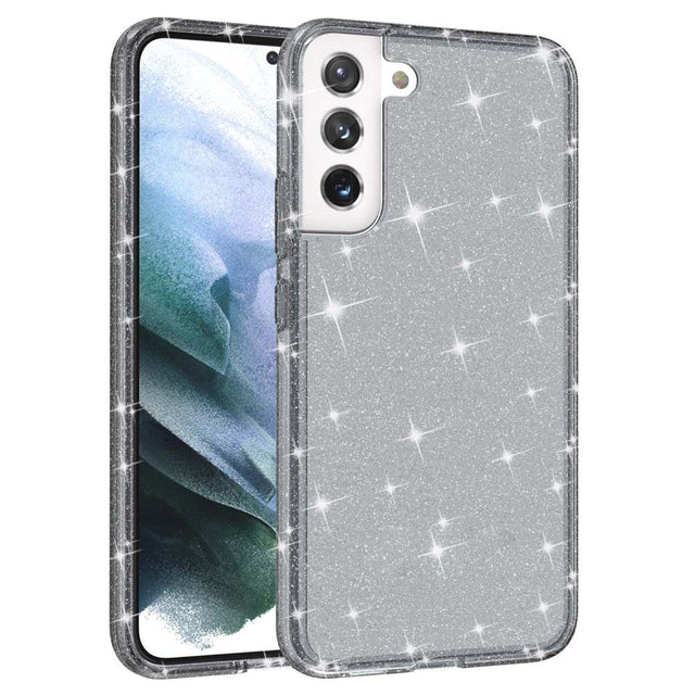 Samsung Galaxy S22 Hybrid Plastik Bagside Cover Gennemsigtig - Sort Glitter