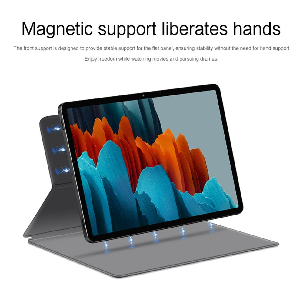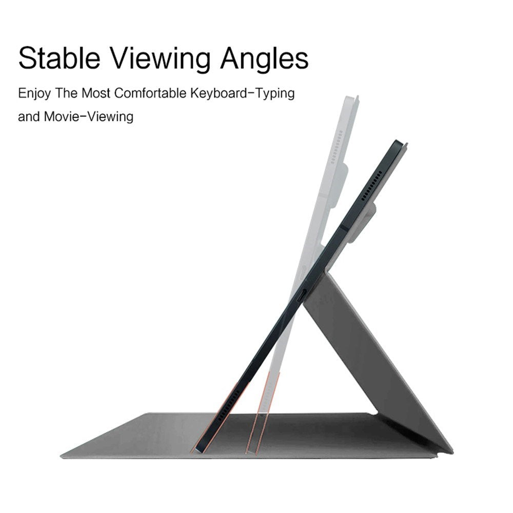 Det magnetiske stativ giver stabile visningsvinkler, mens auto wake/sleep-funktionen hjælper med at spare batteri. Præcise udskæringer og hævet kamerabeskyttelse sikrer fuld funktionalitet, og den indbyggede penholder giver nem adgang til din pen.