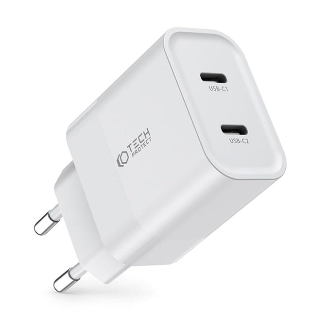 Tech-Protect 20W Vægoplader m. 2 x USB-C - Hvid9319456607093 |
