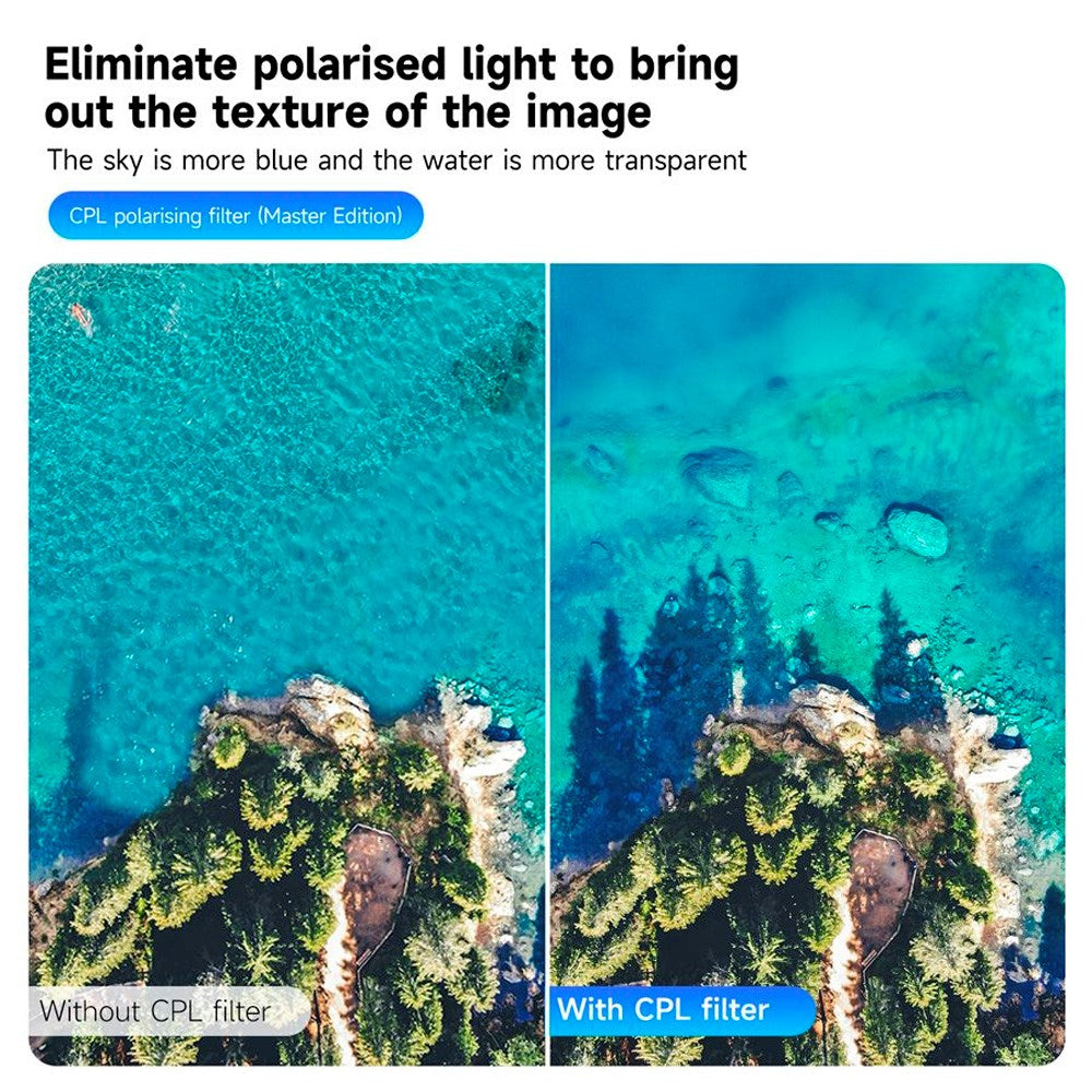 Opgrader dine optagelser med dette professionelle filterkit, designet specifikt til DJI Osmo Action 3, 4 og 5 Pro. Sættet indeholder et CPL-filter, der reducerer refleksioner og forbedrer farver, samt tre ND-filtre (ND8, ND16 og ND32), som giver dig fuld kontrol over lysindfaldet.