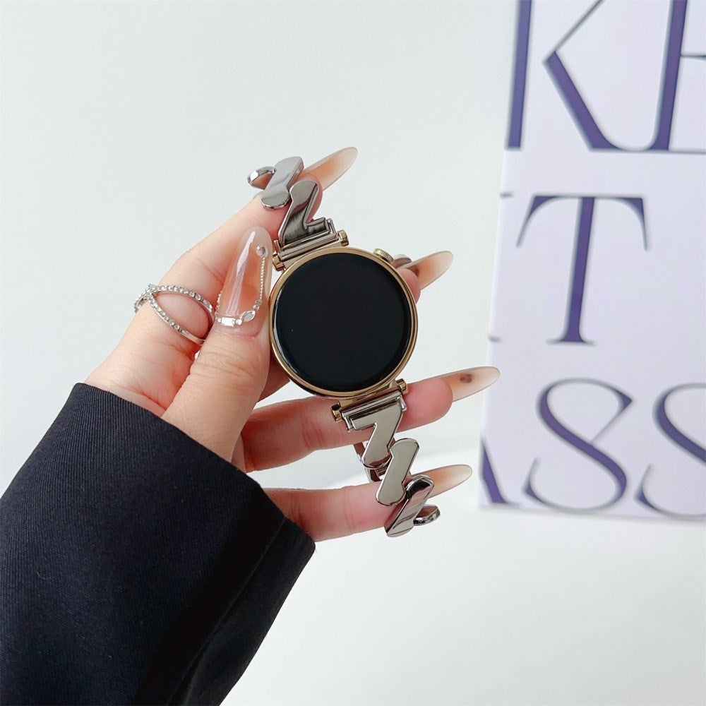 Det elegante bølgedesign tilføjer et moderne og stilfuldt touch, hvilket gør den velegnet til enhver lejlighed, lige fra arbejde til fritidsaktiviteter. Du kan nemt tilpasse længden på remmen ved at fjerne ledene, så den passer perfekt til dit håndled.