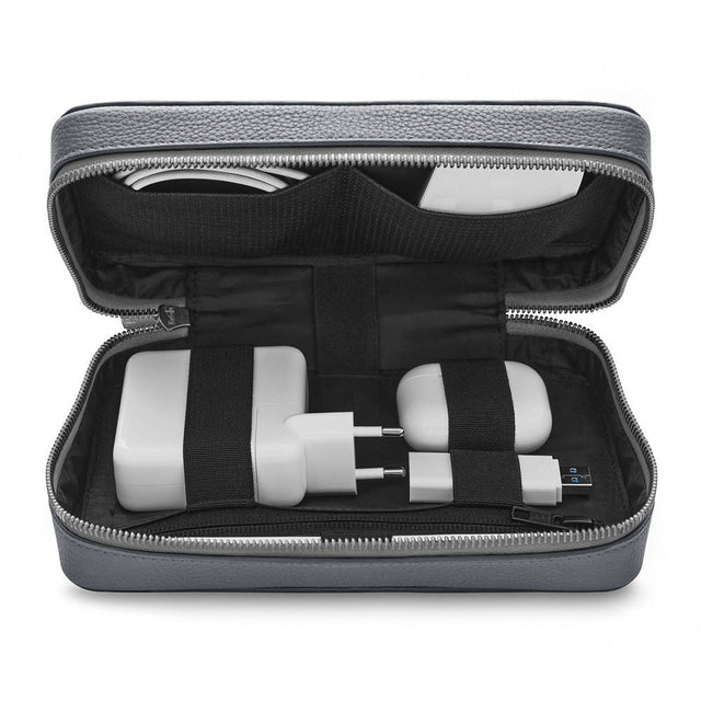 Tech Oganizer i Ægte Læder - Grå